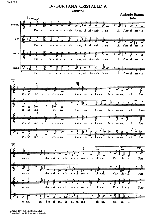 Digital Sheet Music for Funtana cristallina - Score by , Antonio Sanna scored for SATB Choir; id:353784