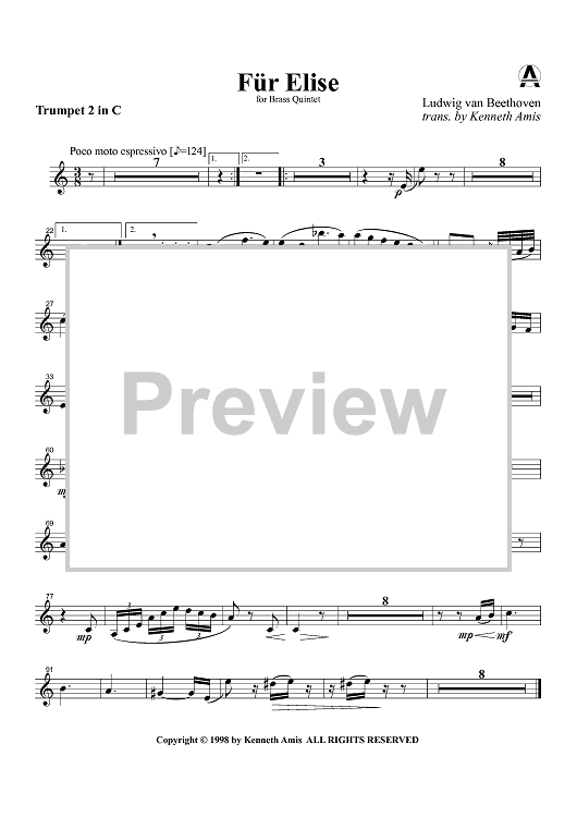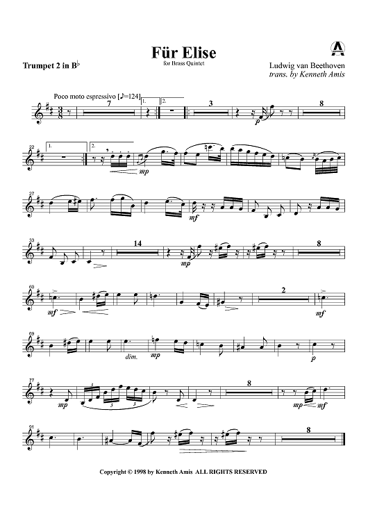 "Für Elise - Trumpet 2" Sheet Music by Ludwig van Beethoven