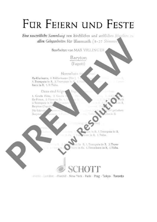 Digital Sheet Music for Für Feiern und Feste - Baritone/bassoon by Max Villinger scored for Wind Bands (8-27 Parts); id:471503