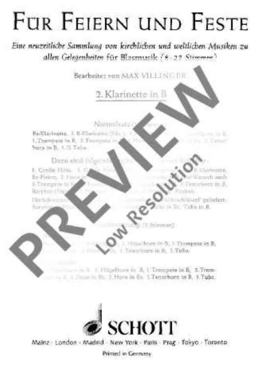 Digital Sheet Music for Für Feiern und Feste - Clarinet Ii In Bb by Max Villinger scored for Wind Bands (8-27 Parts); id:471492