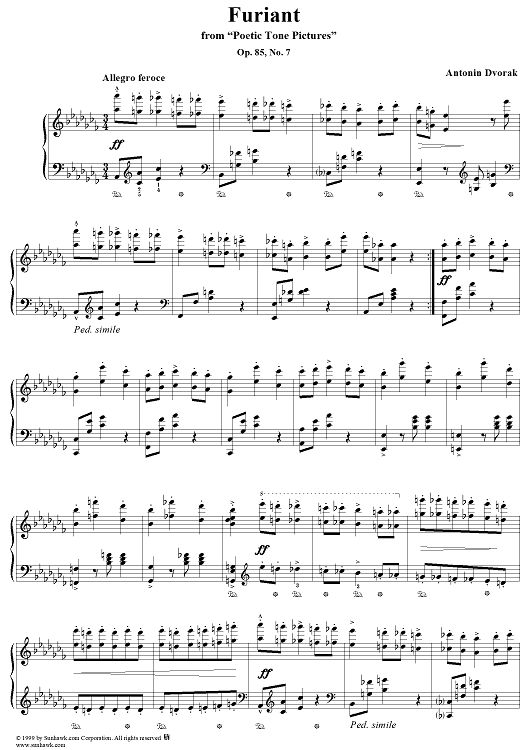 Digital Sheet Music for Furiant, No. 7 from "Poetic Tone Pictures", Op. 85 by Antonín Dvorák scored for Piano Solo; id:271021