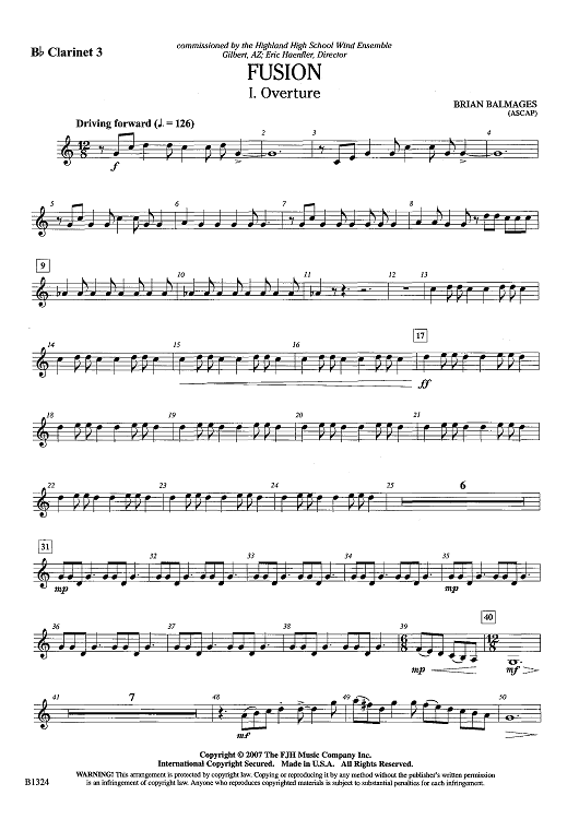 Digital Sheet Music for Fusion - Bb Clarinet 3 by Brian Balmages scored for Concert Band; id:442751