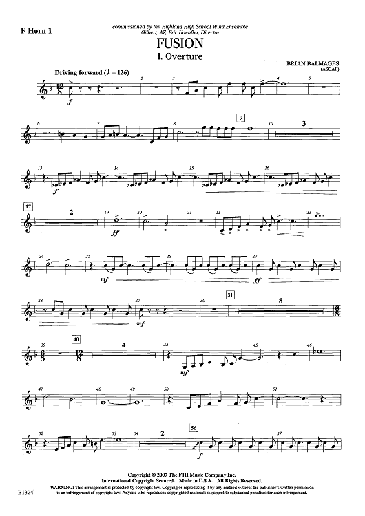 "Fusion - F Horn 1" Sheet Music by Brian Balmages