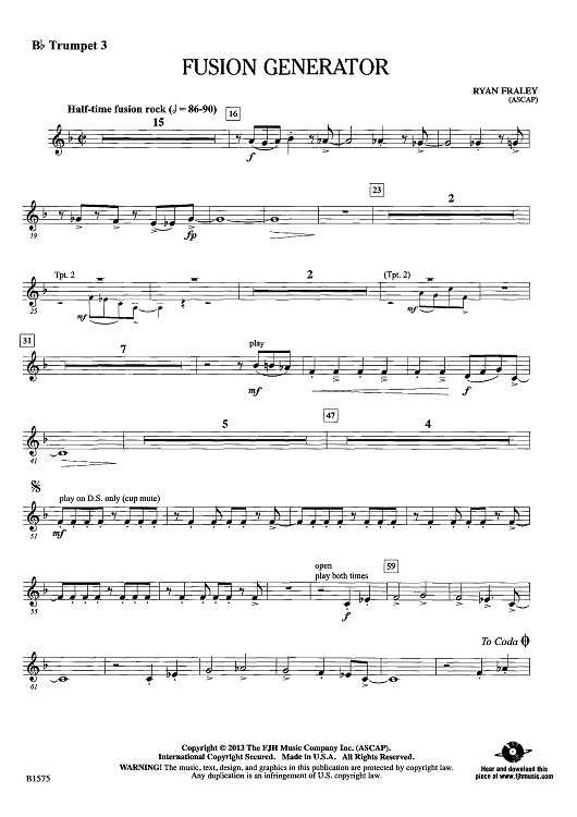 "Fusion Generator - Bb Trumpet 3" Sheet Music by Ryan Fraley
