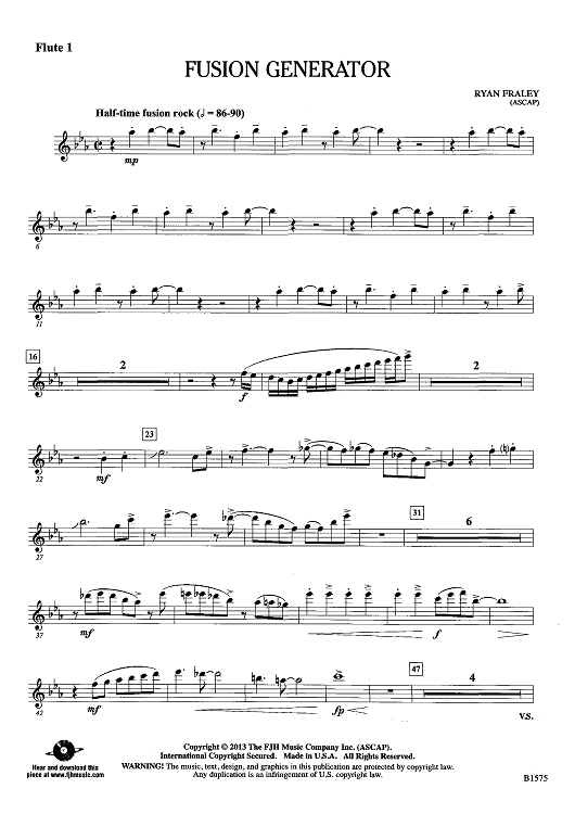 "Fusion Generator - Flute 1" Sheet Music by Ryan Fraley