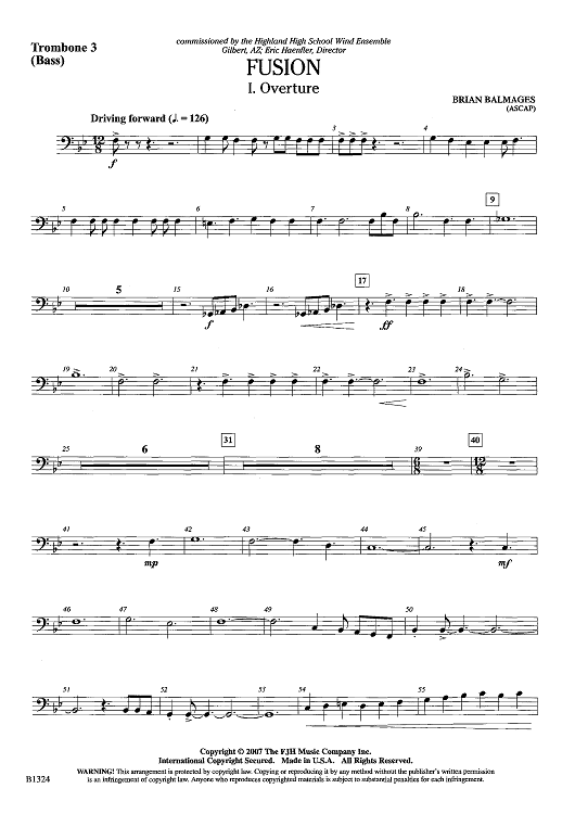 Digital Sheet Music for Fusion - Trombone 3 (Bass) by Brian Balmages scored for Concert Band; id:442766