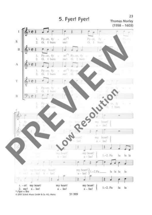 Digital Sheet Music for Fyer! Fyer! by Thomas Morley, Wilfried Fischer, Hans Guenther Bastian scored for Mixed Choir (ssatb); id:481843