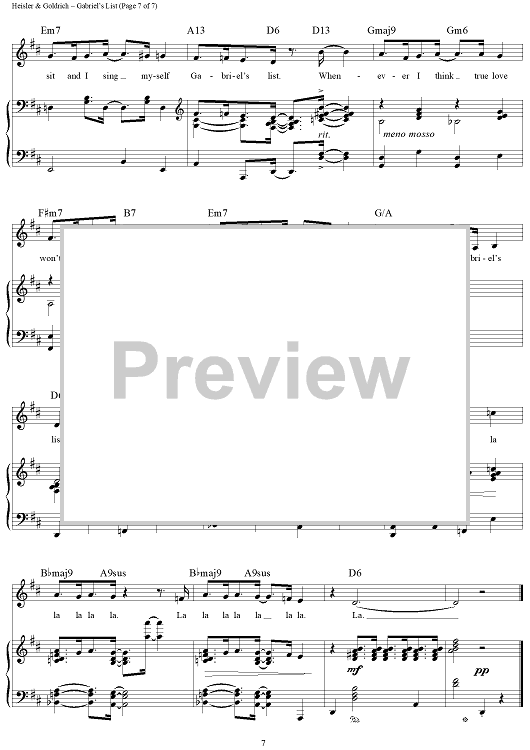 Digital Sheet Music for Gabriel's List by Goldrich & Heisler scored for Piano/Vocal/Chords; id:450432