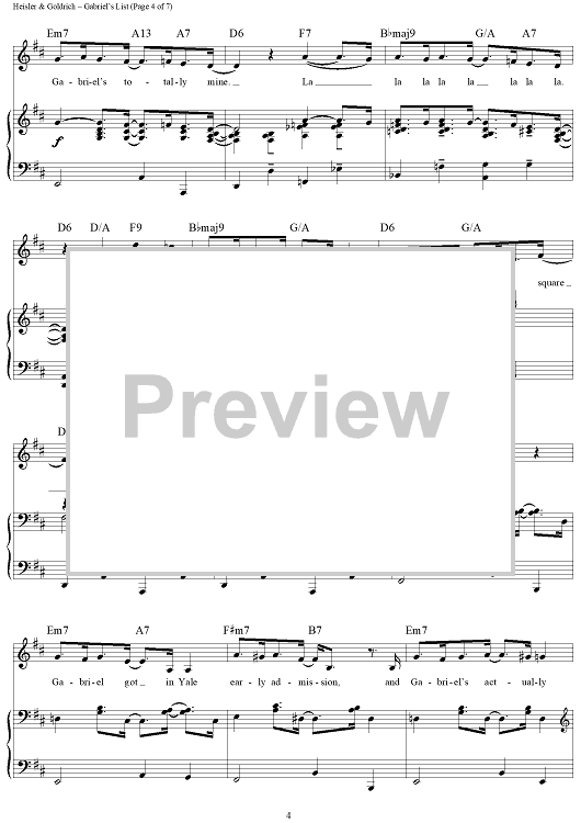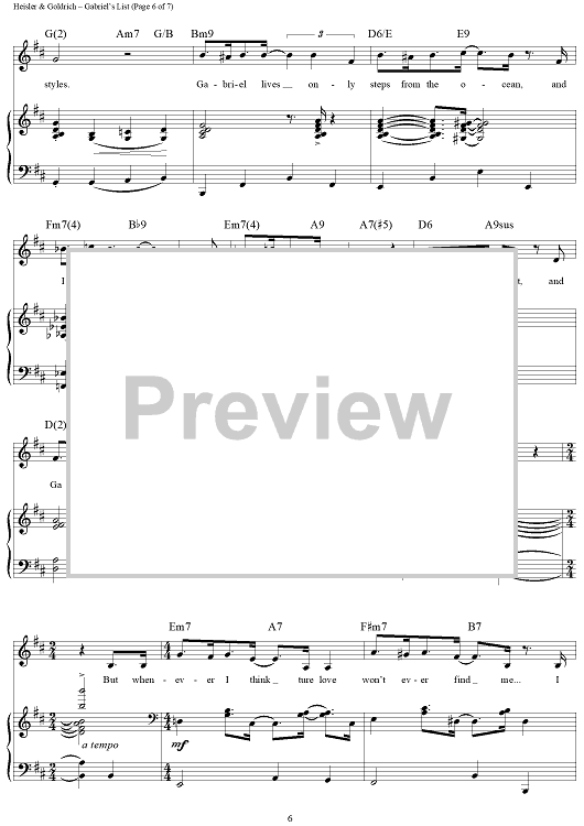 "Gabriel's List" Sheet Music by Goldrich & Heisler