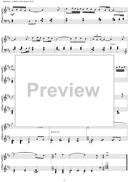 Digital Sheet Music for Gabriel's Oboe by Ennio Morricone scored for Piano Solo; id:397203