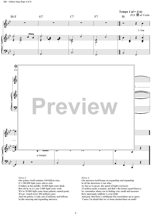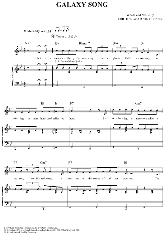 Digital Sheet Music for Galaxy Song by Clint Black, Eric Idle, John Du Prez scored for Piano/Vocal/Chords; id:220509
