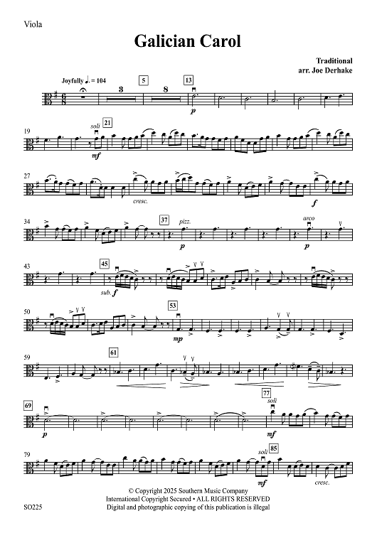 Digital Sheet Music for Galician Carol - Viola by Traditional, Joe Derhake scored for String Orchestra; id:507139