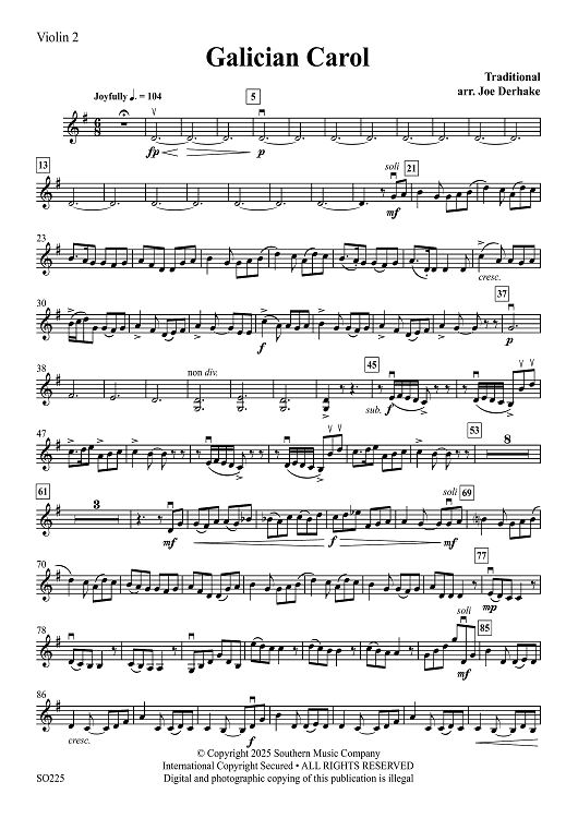 Digital Sheet Music for Galician Carol - Violin 2 by Traditional, Joe Derhake scored for String Orchestra; id:507138