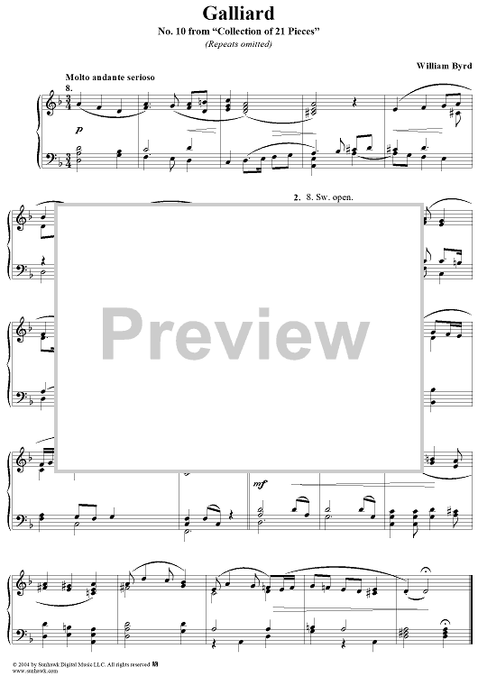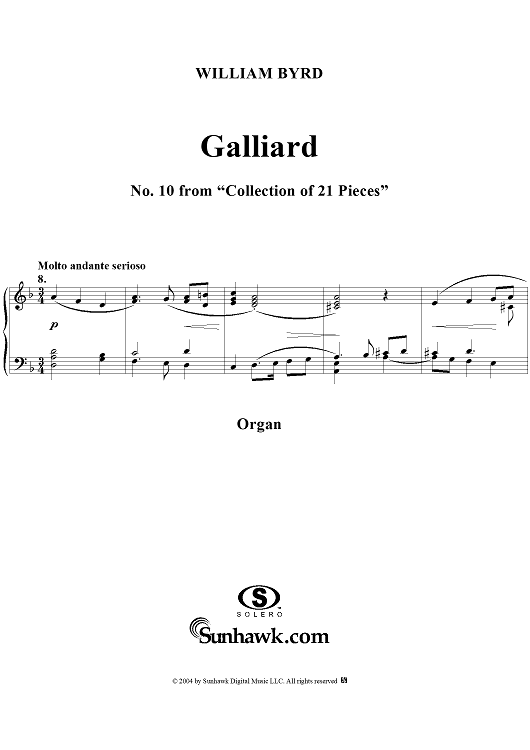 Digital Sheet Music for Galliard by William Byrd scored for Organ Solo; id:296685