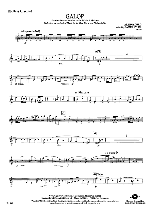 Digital Sheet Music for Galop - Bb Bass Clarinet by James Syler, Arthur Bird scored for Concert Band; id:440562