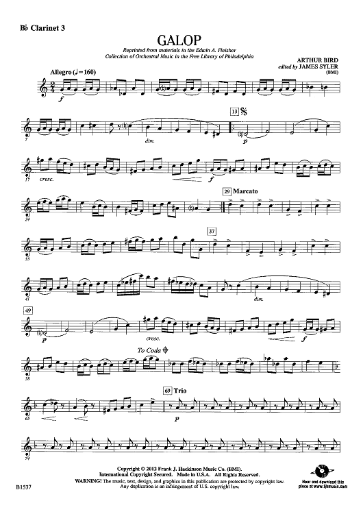 Digital Sheet Music for Galop - Bb Clarinet 3 by James Syler, Arthur Bird scored for Concert Band; id:440561