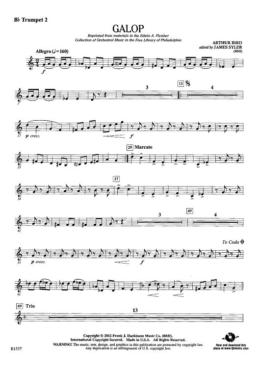 Digital Sheet Music for Galop - Bb Trumpet 2 by James Syler, Arthur Bird scored for Concert Band; id:440568