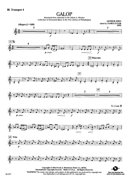 "Galop - Bb Trumpet 4" Sheet Music by Arthur Bird