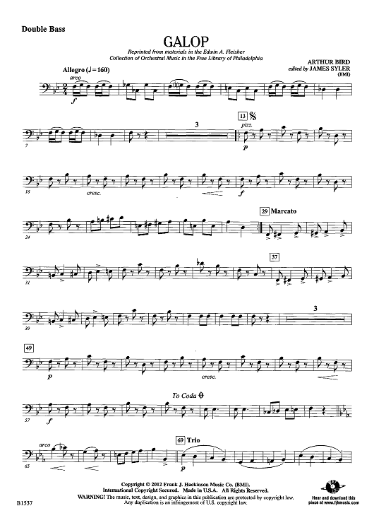 Digital Sheet Music for Galop - Double Bass by James Syler, Arthur Bird scored for Concert Band; id:440583