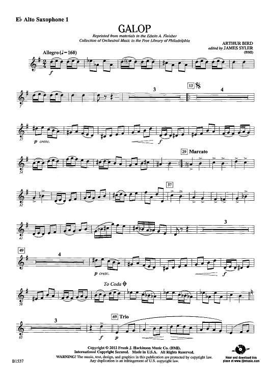 "Galop - Eb Alto Sax 1" Sheet Music by Arthur Bird