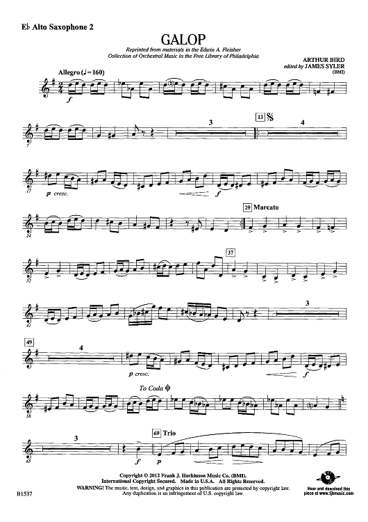 Digital Sheet Music for Galop - Eb Alto Sax 2 by James Syler, Arthur Bird scored for Concert Band; id:440564