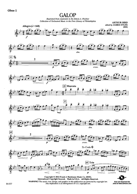 Digital Sheet Music for Galop - Oboe 1 by James Syler, Arthur Bird scored for Concert Band; id:440554