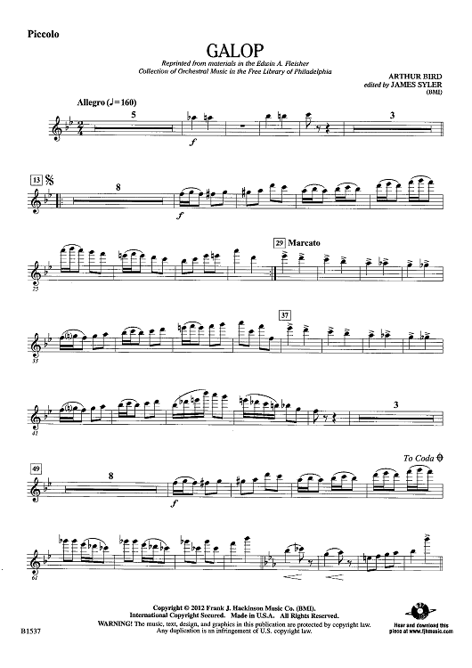 "Galop - Piccolo" Sheet Music by Arthur Bird