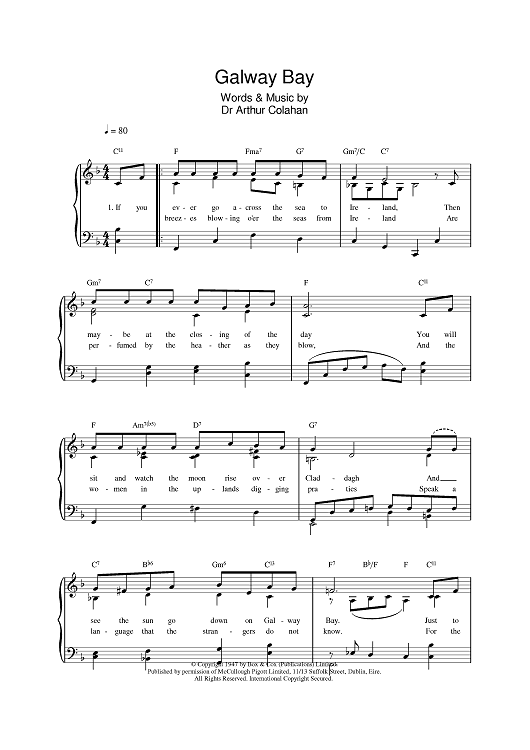 Digital Sheet Music for Galway Bay by Arthur Colahan scored for Piano/Vocal/Chords; id:376062