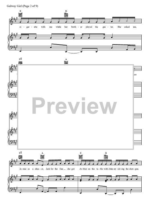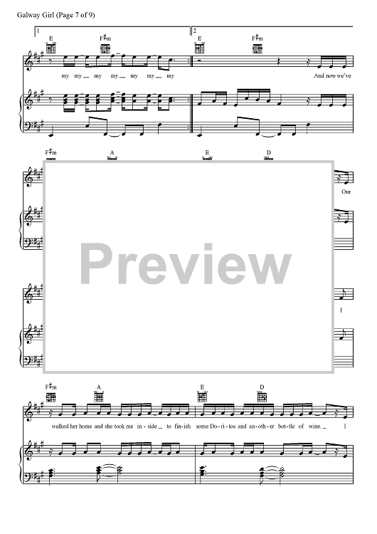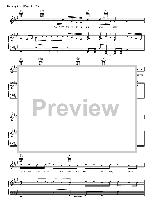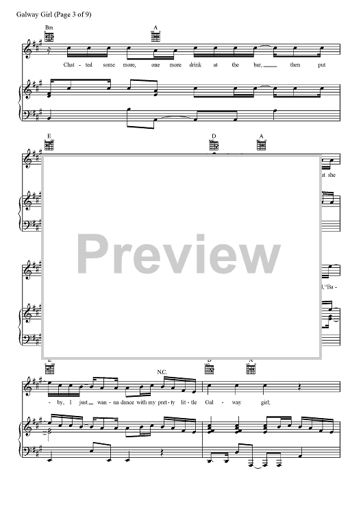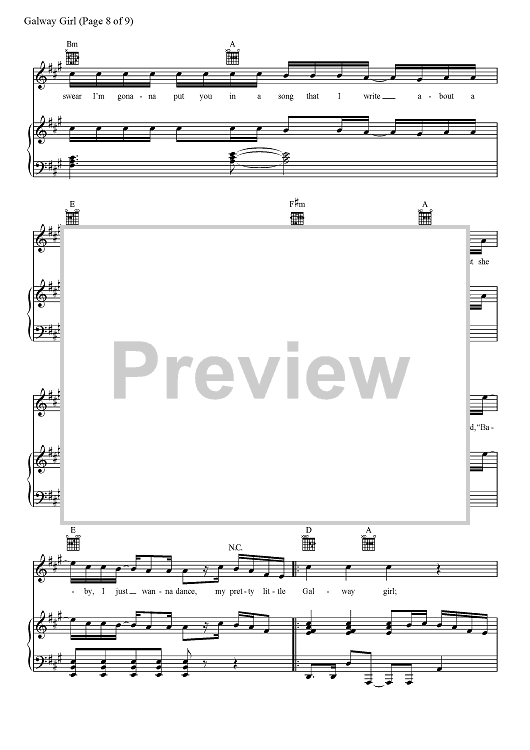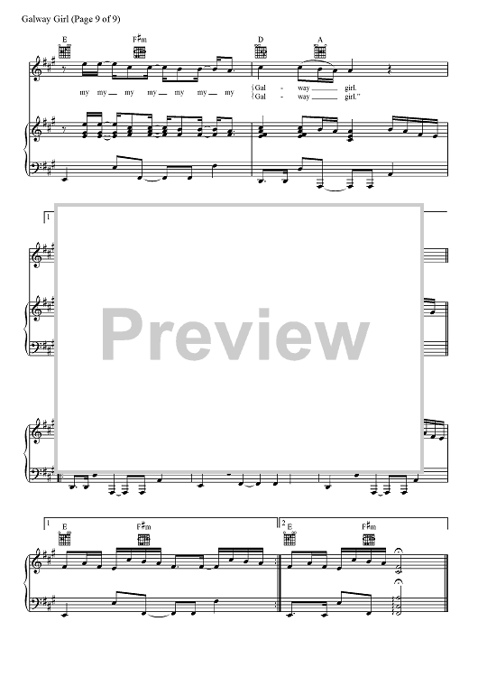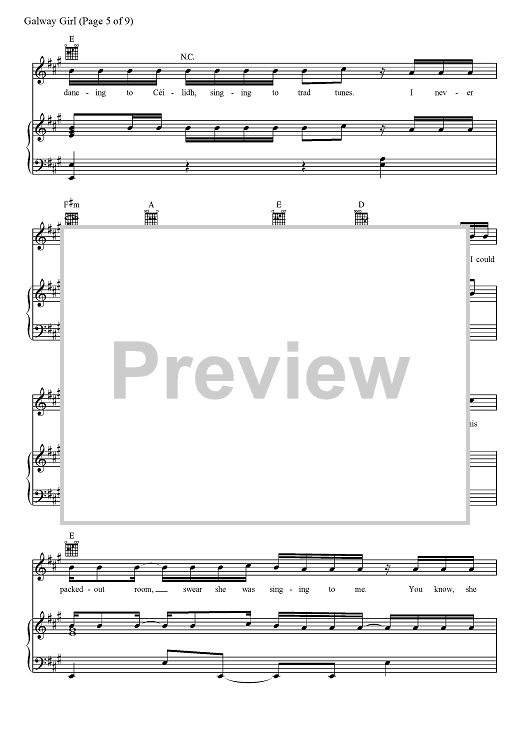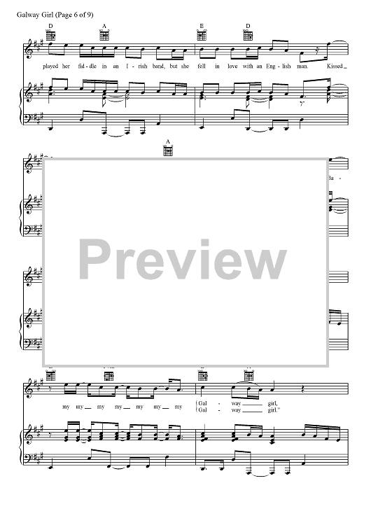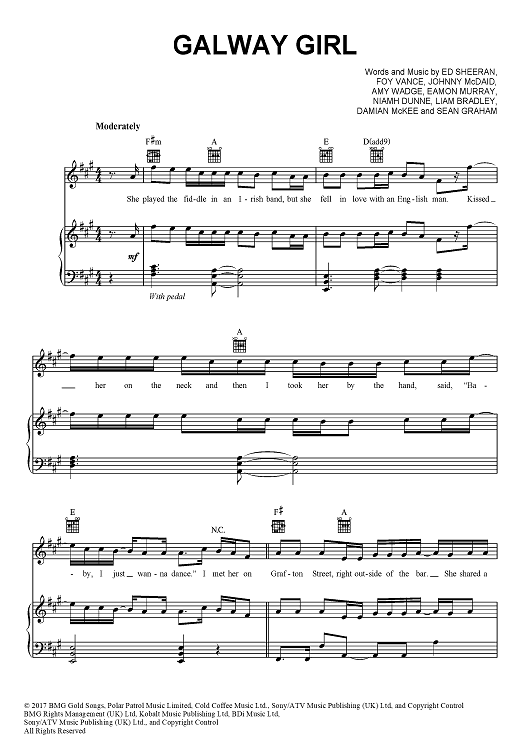 Digital Sheet Music for Galway Girl by Ed Sheeran, John McDaid, Amy Wadge, Foy Vance, Eamon Murray, Niamh Dunne, Liam Bradley, Damian McKee, Sean Graham scored for Piano/Vocal/Chords; id:464130