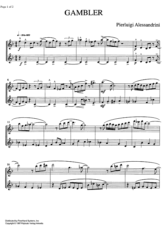 Digital Sheet Music for Gambler by Pierluigi Alessandrini scored for 2 Clarinets; id:331080
