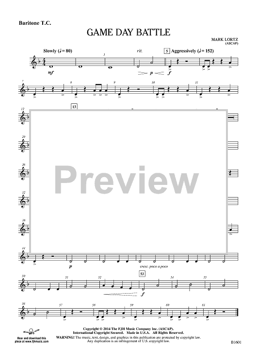 Digital Sheet Music for Game Day Battle - Baritone TC by Mark Lortz scored for Concert Band; id:447615