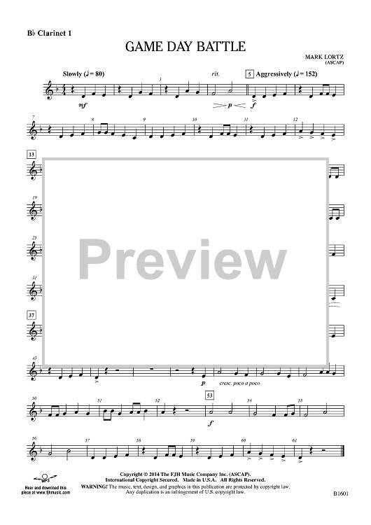 "Game Day Battle - Bb Clarinet 1" Sheet Music by Mark Lortz