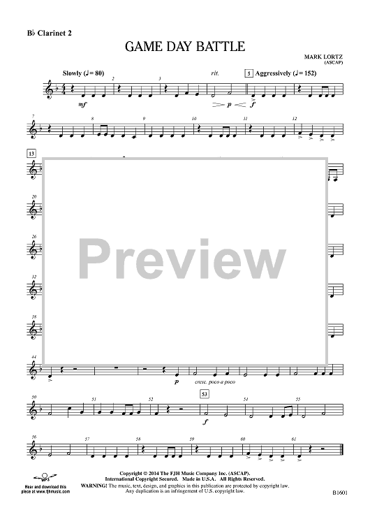 "Game Day Battle - Bb Clarinet 2" Sheet Music by Mark Lortz