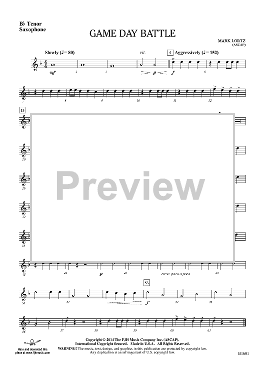 "Game Day Battle - Bb Tenor Sax" Sheet Music by Mark Lortz