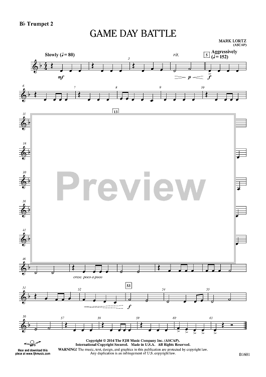 "Game Day Battle - Bb Trumpet 2" Sheet Music by Mark Lortz