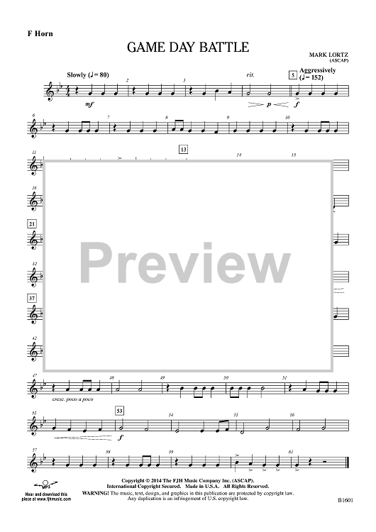 "Game Day Battle - F Horn" Sheet Music by Mark Lortz