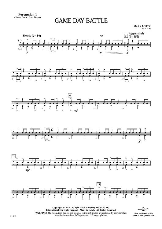 "Game Day Battle - Percussion 1" Sheet Music by Mark Lortz