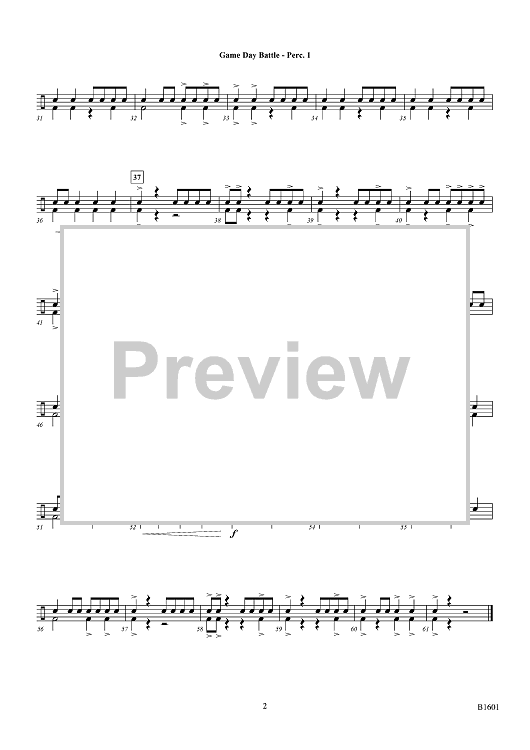 Digital Sheet Music for Game Day Battle - Percussion 1 by Mark Lortz scored for Concert Band; id:447619