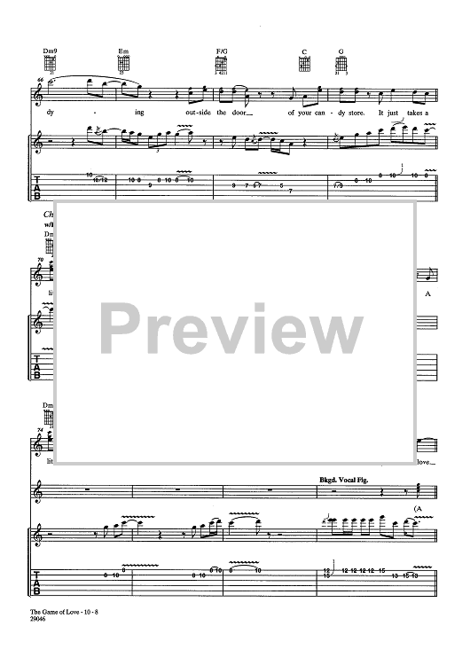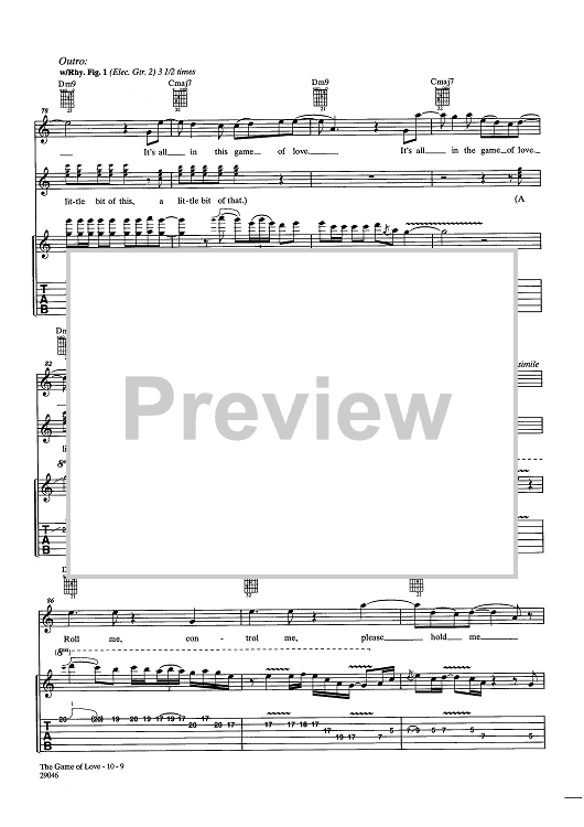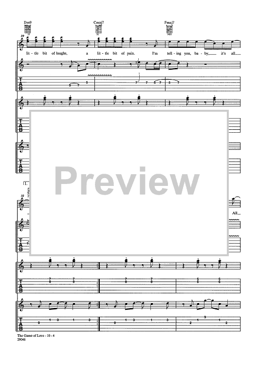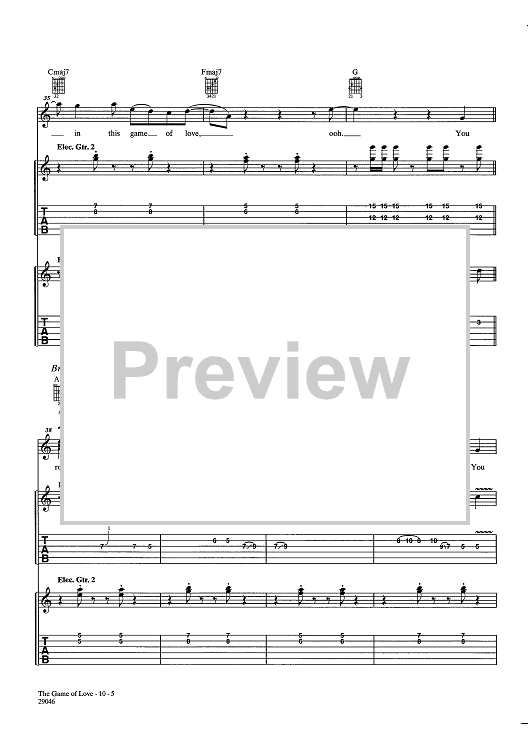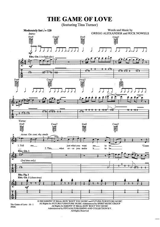 Digital Sheet Music for Game Of Love by Tina Turner, Rick Nowels, Gregg Alexander, Santana scored for Guitar Tab/Vocal/Chords; id:438101