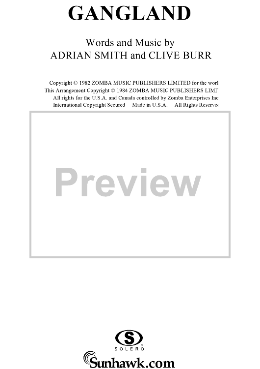 "Gangland" Sheet Music by Iron Maiden
