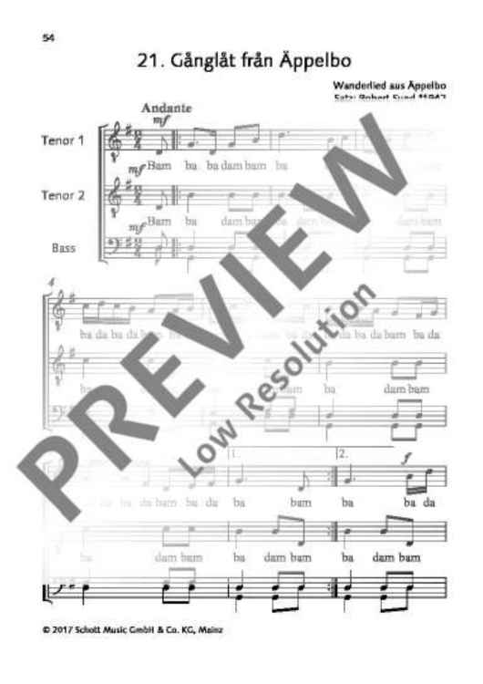 Digital Sheet Music for Gånglåt från Äppelbo by Robert Sund scored for Men's Choir (ttbb) A Cappella; id:492061