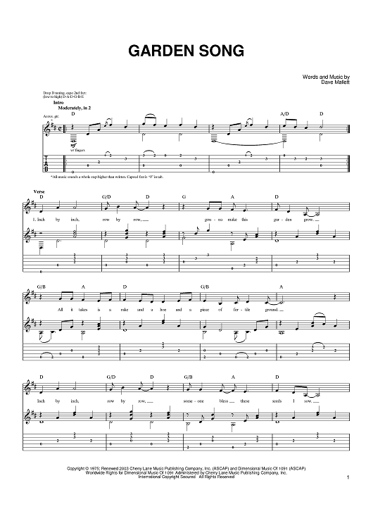 Digital Sheet Music for Garden Song by John Denver, Dave Mallett scored for Guitar Tab; id:402482