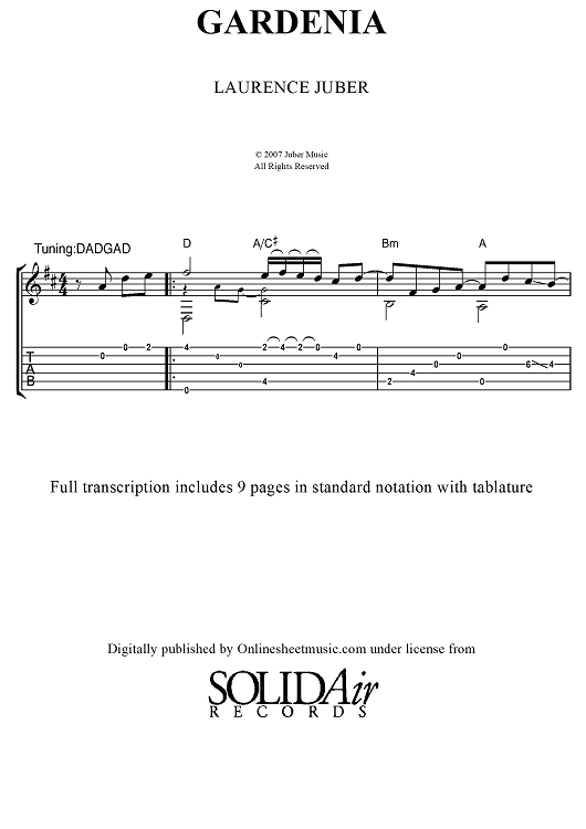 Digital Sheet Music for Gardenia (No MP3) by Laurence Juber scored for Guitar Tab; id:451982