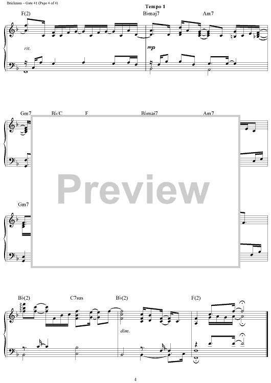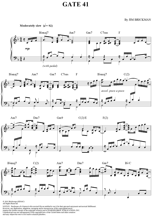 Digital Sheet Music for Gate 41 by Jim Brickman scored for Piano Solo; id:284503