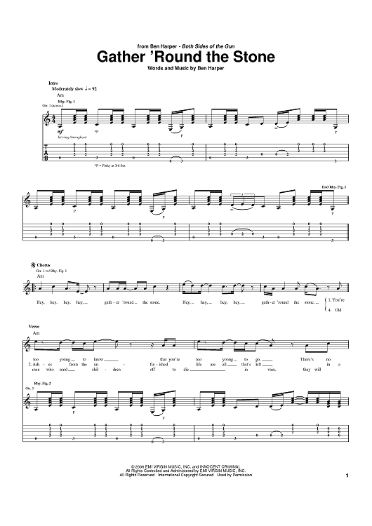 Digital Sheet Music for Gather 'Round The Stone by Ben Harper scored for Guitar Tab; id:390081