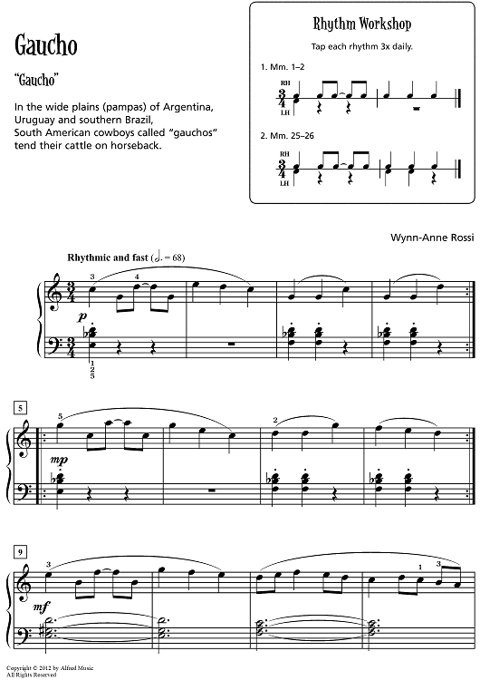 Digital Sheet Music for Gaucho by Wynn-Anne Rossi scored for Piano; id:469513