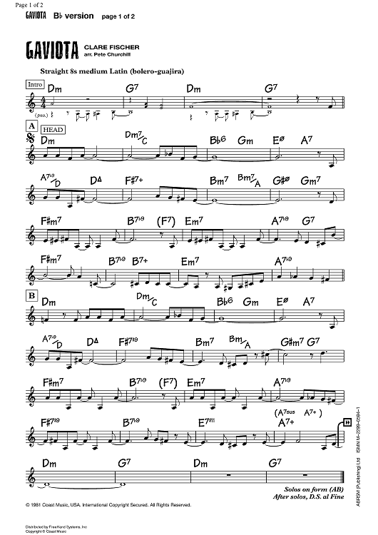 Digital Sheet Music for Gaviota by , Pete Churchill, Clare Fisher scored for B-flat Lead Sheet; id:339981