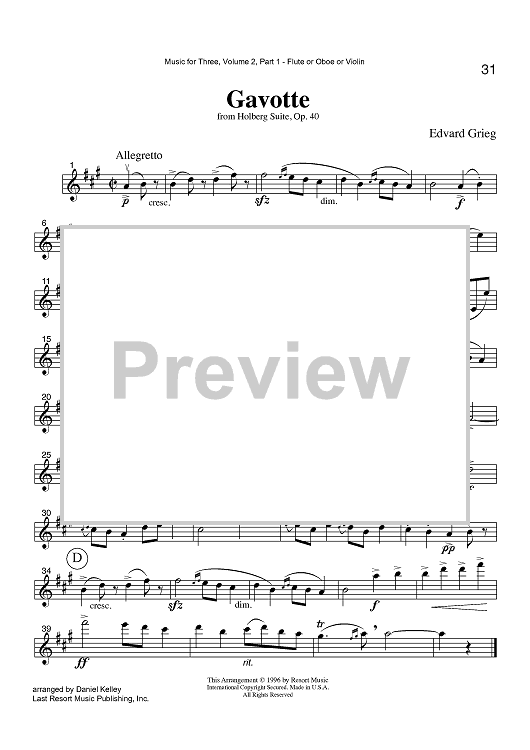 Digital Sheet Music for Gavotte - from Holberg Suite, Op. 40 - Part 1 Flute, Oboe or Violin by , Edvard Grieg, Daniel Kelley scored for Instrumental Trio; id:422746