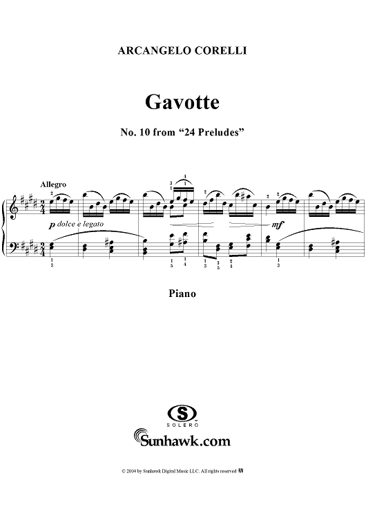 "Gavotte in E Major, No. 10 from "Twenty Four Preludes"" Sheet Music by Arcangelo Corelli