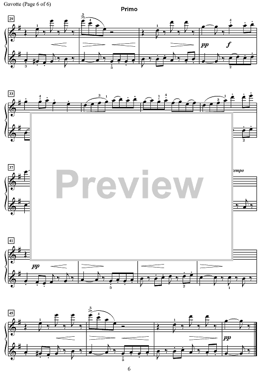 Digital Sheet Music for Gavotte, Op. 66, No. 2 by Anton Arensky scored for 1 Piano, 4 Hands; id:503059